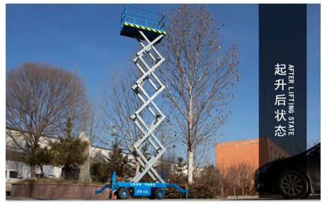 趙經(jīng)理采購的是我們常規(guī)10米、載重500公斤的升降平臺,它的工作臺尺寸為2100*1230mm,外形尺寸2250*1350*1530mm,剪叉式升降機整機重量為1360kg。常規(guī)產(chǎn)品的行走方式為人力牽引,升降方式為接入380v/220v電源升降。(也可以根據(jù)客戶不同的需求更改行走與升降方式)。
