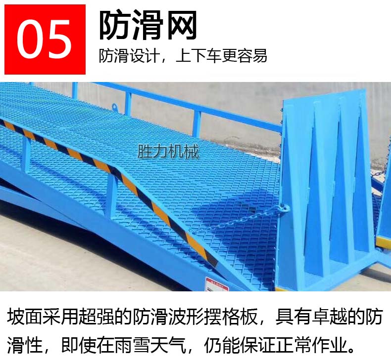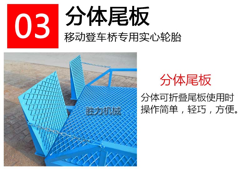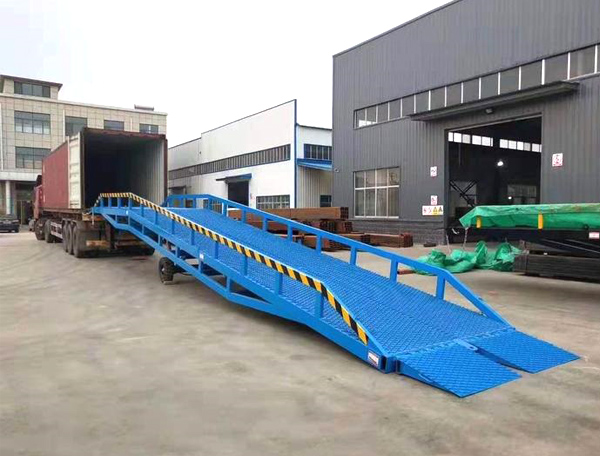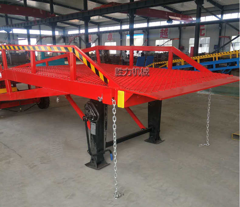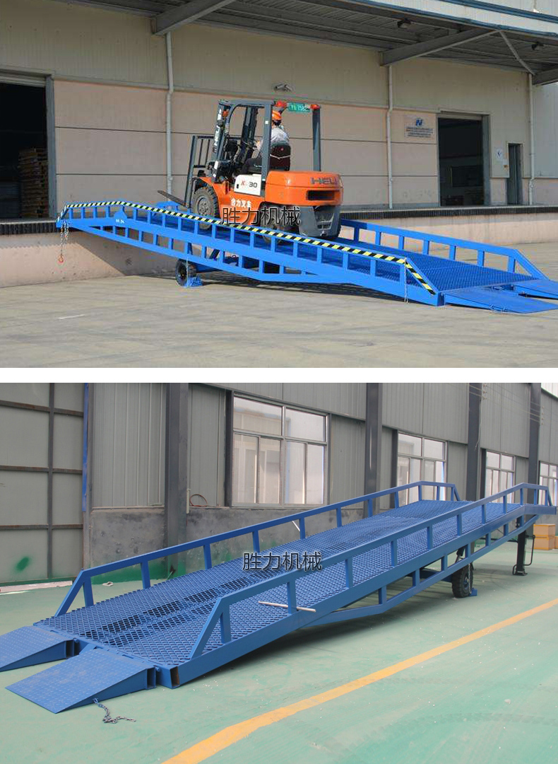 移動(dòng)登車橋也被稱作叉車裝卸專用平臺(tái),是裝卸貨物的專用液壓設(shè)備,設(shè)備帶有移動(dòng)輪,可隨時(shí)移動(dòng)到裝卸地點(diǎn)。移動(dòng)登車橋根據(jù)額定載重量可分為6噸、8噸、10噸、12噸、15噸,設(shè)備總長(zhǎng)11米,帶有坡度,叉車等搬運(yùn)車輛可通過移動(dòng)登車橋的坡度和高度直接駛?cè)胴涇噧?nèi)部進(jìn)行裝卸貨物作業(yè),在提高裝卸作業(yè)效率的同時(shí)又能充分保障作業(yè)安全。移動(dòng)登車橋無需外接電源,可通過手壓泵做動(dòng)力進(jìn)行能設(shè)備高度的調(diào)整,可以充分適應(yīng)各種不同高度的貨車。移動(dòng)登車橋加快裝卸貨物的速度,減少勞動(dòng)力,為企業(yè)獲取更大的經(jīng)濟(jì)效益。